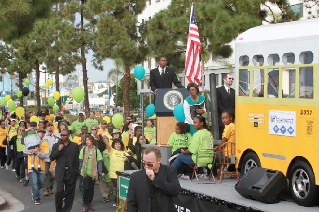 March at the Martin Luther King Day Parade and Festival in San Diego, CA, where one of the largest celebrations honoring Martin Luther King features marching bands, floats, dancers, exhibits, entertainment, and food. If you want to participate in one of the largest celebrations of its kind in the USA, travel to the Martin Luther King Day Parade and Festival.