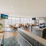 - Panoramic marina views from every seat