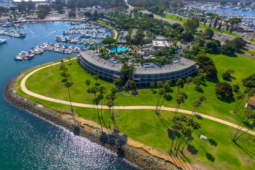The Dana on Mission Bay delivers an exceptional lodging experience in a casual, relaxed atmosphere. Rest comfortably in a well-appointed guestroom or two-room suite overlooking Mission Bay. Delight in such quality amenities as two outdoor, heated swimming pools, fitness center, private marina, and watersport and bicycle rentals on site.