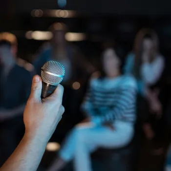 The Cagematch is an improv comedy event where two teams compete on stage with quick wit and improvisational skills. The audience participates by deciding which team advances to the next showdown through their reactions. The event is designed as an interactive and energetic improv battle.